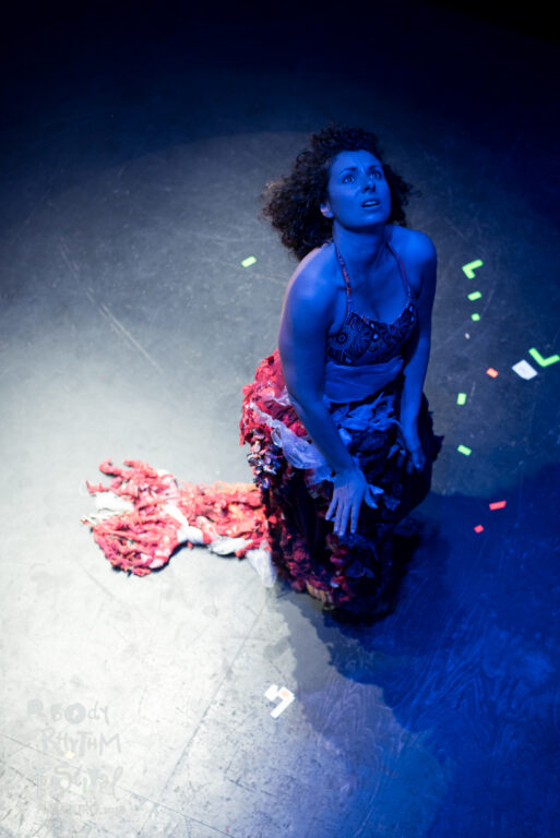 Riprendo il filo per chi mi conoscesse da relativamente poco, quello stesso filo rosso con cui è stato intrecciato questo costume sonoro e iconico. La foto qui a fianco mi ritrae nel 2018 al Body Rhythm Festival ad Amburgo dove ho portato proprio un estratto di Sirene, una creazione messa in scena in poche ma preziosissime occasioni, necessaria forse più a me che al pubblico, mi rendo conto oggi. Dico questo perché quando ripenso a questo progetto infatti, mi accorgo di come il processo in cui mi sono avvolta in quei mesi, abbia segnato una transizione fondamentale non solo professionalmente, ma anche nella mia vita privata, determinando cambiamenti radicali. Ha fatto circolare tanta energia, vitalità, idee, è stata una solitaria immersione negli abissi, dentro le mie ombre nella scoperta delle mie risorse, mi ha connesso a dimensioni che avrei toccato nuovamente solo anni dopo attraverso strade molto differenti.